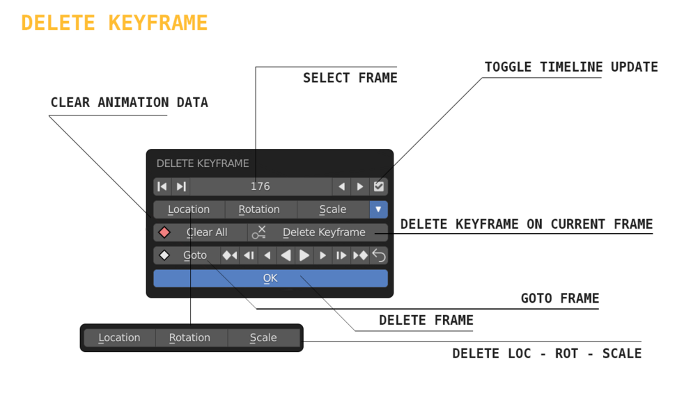 Delete or Insert - Loc - Rotation or Scale - Keyframes